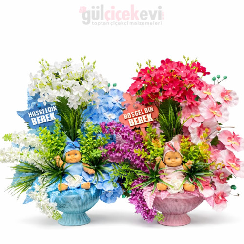 Bebek tanzimleri için özel tasarlanmış Hoş Geldin Bebek aranjmanı. Çiçekçiler için ideal, vitrin ve siparişlere uygun, şık ve hazır bebek çiçeği modeli.