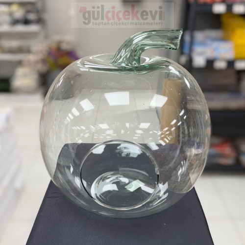 Büyük Elma Şeffaf Dekoratif Teraryum Vazo - 20509 - deg -