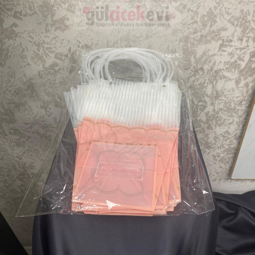 Desenli ön yüzeyli şeffaf hediye çantası; çiçek aranjmanları, buketler ve özel gün hediyeleri için zarif bir ambalaj seçeneğidir. Şeffaf üst bölüm içeriği estetik biçimde sergilerken, alt bölümdeki dekoratif baskı sunuma şıklık katar. Sağlam tabanı ve dayanıklı kulpları sayesinde güvenli ve pratik taşıma sağlar. Çiçekçiler, organizasyon firmaları ve hediyelik sunumlar için idealdir.