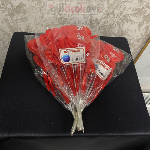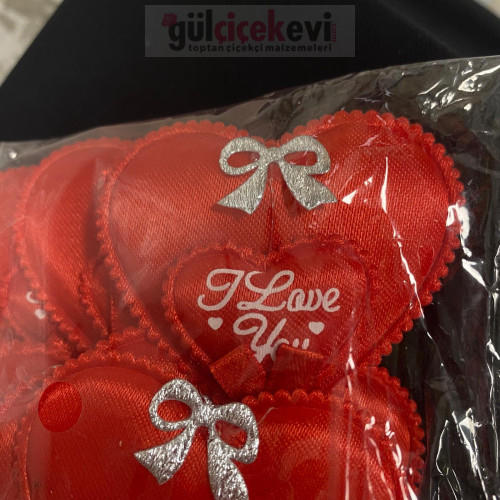 Dekoratif Kumaş Love Yazılı Çubuk Kalp 20 cm 12'li - 71152 - deg -