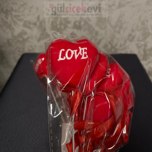 Dekoratif Kadife Strafor Çubuk Kalp 25 cm 12'li - 20336 - deg -