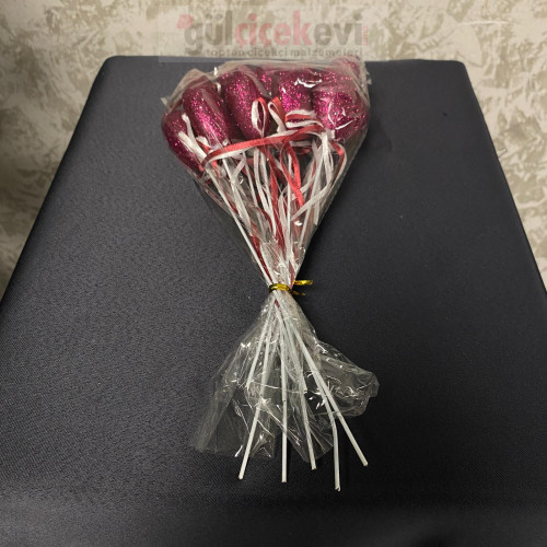Dekoratif Strafor Simli Çubuk Kalp 25 cm 10'lu - 71154 - deg -