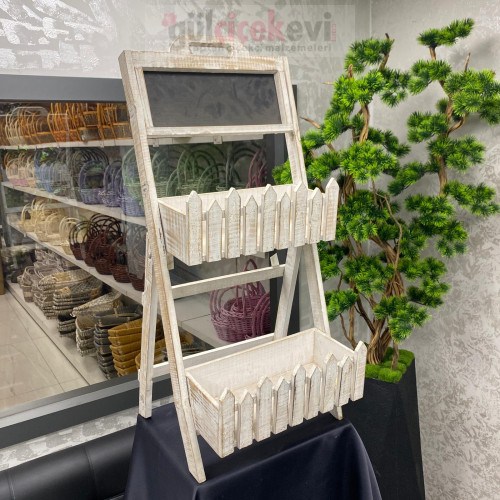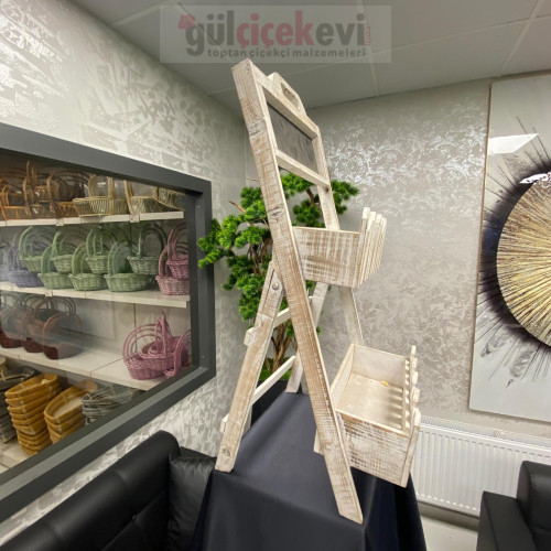Dekoratif Vintage Doğal Ahşap Merdiven Saksı Rafı - 70228 -