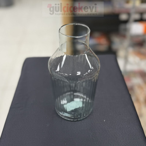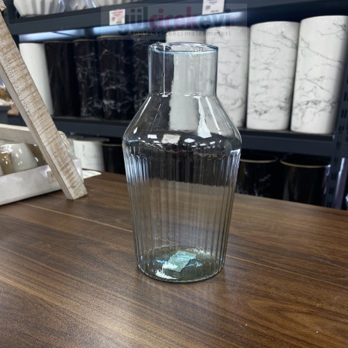 Dikey Çizgili Şeffaf Cam Vazo - 20320 - deg -