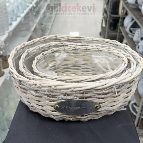 Flowers Etiketli Oval Hasır Çiçek Sepeti 3'lü - 23029