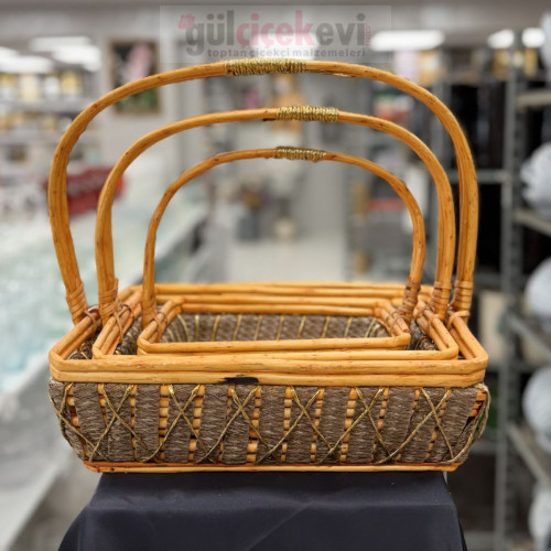 Hasır Çiçek Sepeti 3'lü - 23060 - deg -