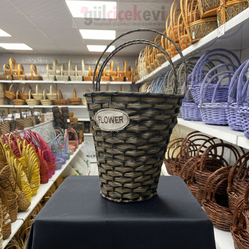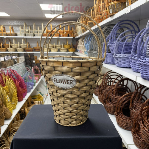 Dekoratif Flower Yazılı Hasır Saksı - 22274
