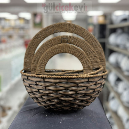 Hasır Çiçek Sepeti 3'lü - 23061 - deg -