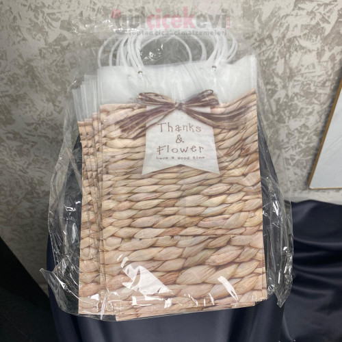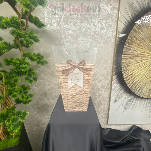 Desenli ön yüzeyli şeffaf hediye çantası; çiçek aranjmanları, buketler ve özel gün hediyeleri için zarif bir ambalaj seçeneğidir. Şeffaf üst bölüm içeriği estetik biçimde sergilerken, alt bölümdeki dekoratif baskı sunuma şıklık katar. Sağlam tabanı ve dayanıklı kulpları sayesinde güvenli ve pratik taşıma sağlar. Çiçekçiler, organizasyon firmaları ve hediyelik sunumlar için idealdir.