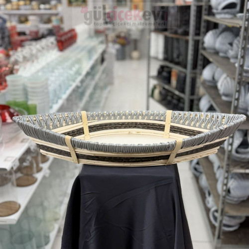 Oval Hasır Sunum Sepeti, doğal dokusu ve zarif oval formuyla çiçek ve dekorasyon sunumlarına şıklık katar. El işçiliğini andıran örgü yapısı sayesinde hem estetik hem de sağlam bir kullanım sunar. Alçak kenarlı tasarımı, çiçek aranjmanlarının ve dekoratif objelerin rahatça sergilenmesini sağlarken, açık krem tonları her konsepte kolayca uyum sağlar.