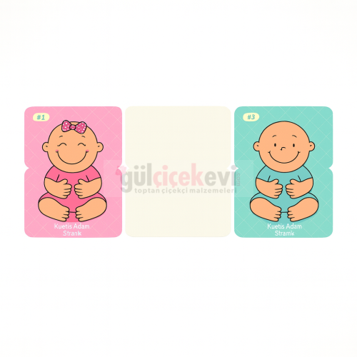 Kartların ortasında yer alan boş bölüm, çiçekçiler için büyük avantajdır; buraya bebek ismi, teslim notu, özel mesaj veya marka etiketi kolayca eklenebilir.