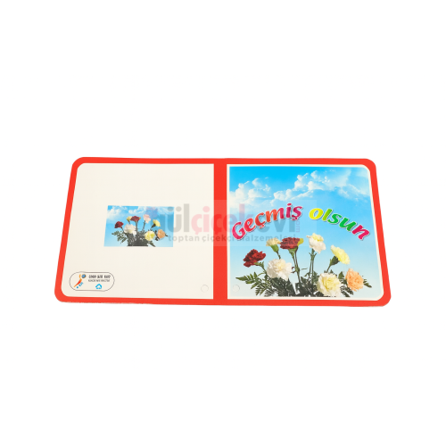 Hastalık dönemlerinde moral vermek ve iyi dilekleri iletmek için hazırlanan çiçeklerde kullanılan bu Geçmiş Olsun notluk kartı, çiçekçilik sektörünün en çok tercih ettiği modellerden biridir.
