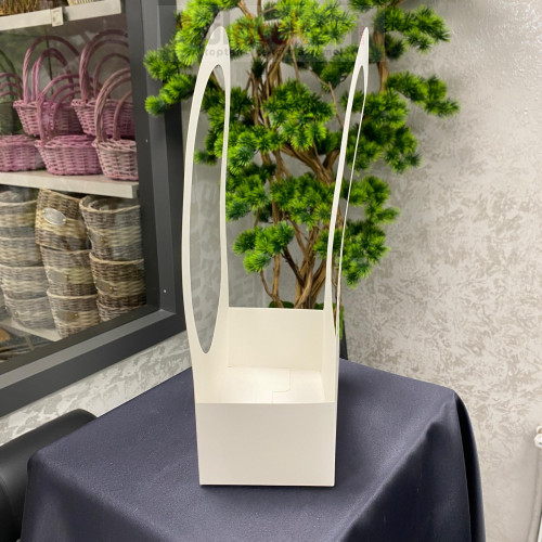 Modern ve dikkat çekici tasarımıyla öne çıkan oval tutma halkalı çiçek aranjman kutusu, çiçek sunumlarına şık ve özgün bir görünüm kazandırır. Üst kısmındaki geniş oval taşıma halkaları hem estetik hem de pratik kullanım sağlar.