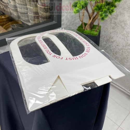 Dayanıklı karton yapısı sayesinde aranjmanları güvenle taşımaya uygundur. Minimal tasarımı ve yazı detaylarıyla modern çiçek konseptlerine uyum sağlar. Sevgililer Günü, Anneler Günü ve özel günler için hazırlanan çiçek aranjmanlarında profesyonel sunum arayan çiçekçiler için ideal bir ambalaj çözümüdür.
