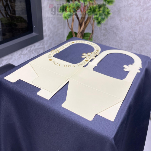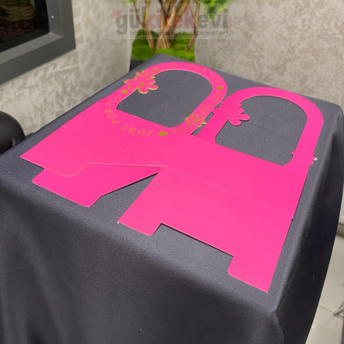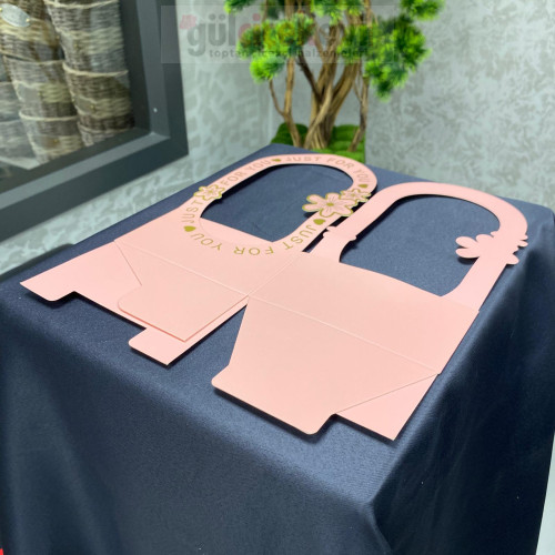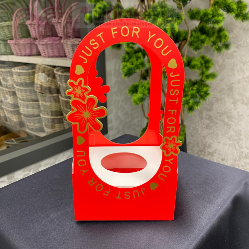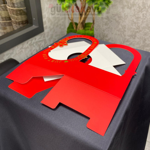 Kırmızı zemin üzerine altın detaylı yazı ve çiçek motifleriyle şık bir görünüm sunar. Dayanıklı karton yapısı formunu korur ve güvenli taşıma sağlar. Sevgililer Günü, özel kutlama ve romantik sürprizler için ideal bir sunum çözümüdür.