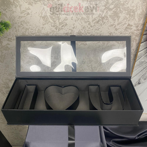Şık ve modern tasarımıyla öne çıkan LOVE konseptli bu özel kutu, içi ister yapay dilerseniz canlı güllerle doldurulmuş dekoratif bir hediye sunumudur. Mat siyah kutu yapısı ve şeffaf kapak detayı sayesinde iç tasarım estetik şekilde sergilenir. Sevgililer Günü, yıldönümü, doğum günü ve özel günlerde romantik ve anlamlı bir hediye alternatifi sunar. Çiçekçiler ve butik hediyelik ürün sunumları için ideal, uzun ömürlü ve dikkat çekici bir konsept üründür.