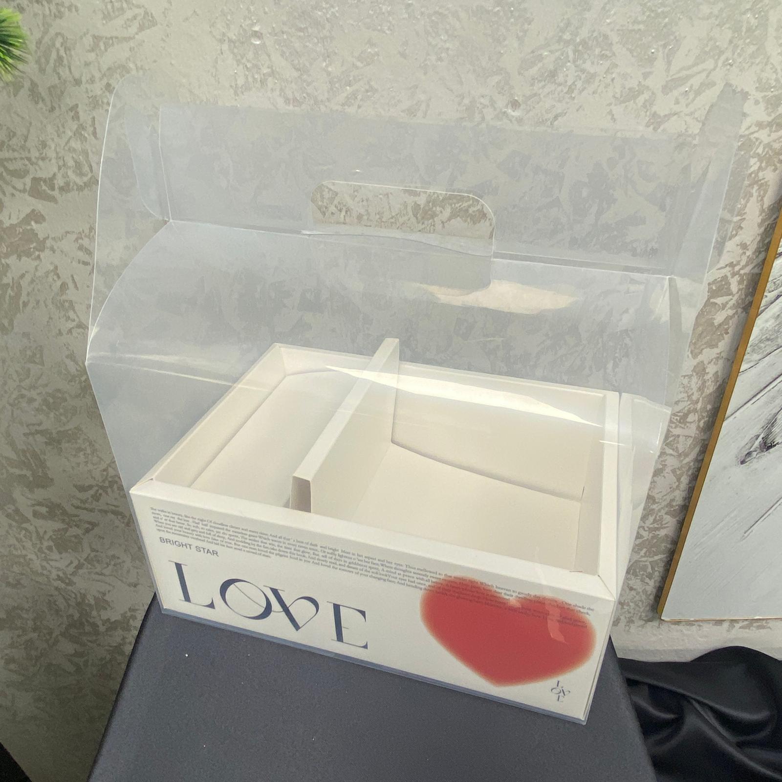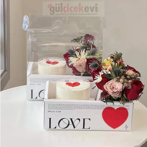 Şeffaf kapak tasarımı, hediyenin içeriğini net bir şekilde sergilerken “LOVE” temalı baskısı romantik ve dikkat çekici bir görünüm sunar. Doğum günü, Sevgililer Günü, yıl dönümü ve özel kutlamalar için ideal bir hediye sunum çözümüdür. Hem profesyonel butik sunumlar hem de kişisel hediye hazırlıkları için uygundur.
