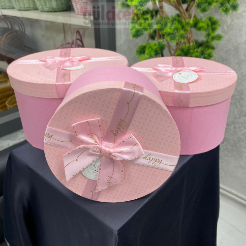 Premium Silindirik Formlu Saplı Özel Gün Hediye Kutusu 3'lü - 70559 -
