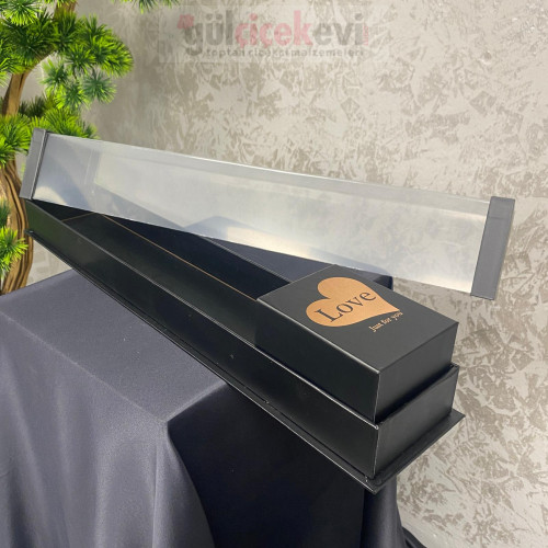 Şeffaf kapaklı ve uzun formda tasarlanan bu özel kutu, çiçek aranjmanları ve konsept hediyeler için modern ve şık bir sunum imkânı sağlar. Tek parça arka kapak yapısı sayesinde sağlam ve kullanışlıdır. İç bölmeleri, farklı konsept tasarımlar ve özel düzenlemeler için uygundur. Özel günlerde hazırlanan aranjmanlar, yapay gül tasarımları ve butik hediyelik sunumlar için ideal bir ambalaj çözümüdür. Profesyonel ve estetik görünümüyle çiçekçiler ve hediyelik ürün satıcıları tarafından tercih edilir.