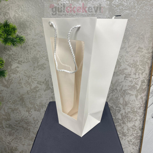 Şeffaf pencereli kraft hediye çantası; çiçek aranjmanları, buketler ve özel gün sunumları için doğal ve şık bir ambalaj çözümüdür. Dayanıklı kraft karton yapısı sayesinde formunu korur, ön yüzündeki şeffaf pencere ise içeriğin estetik şekilde sergilenmesini sağlar. Sağlam ip kulpları ile taşıması pratiktir. Çiçekçiler, organizasyon firmaları ve hediyelik ürün sunumları için ideal bir tercihtir.