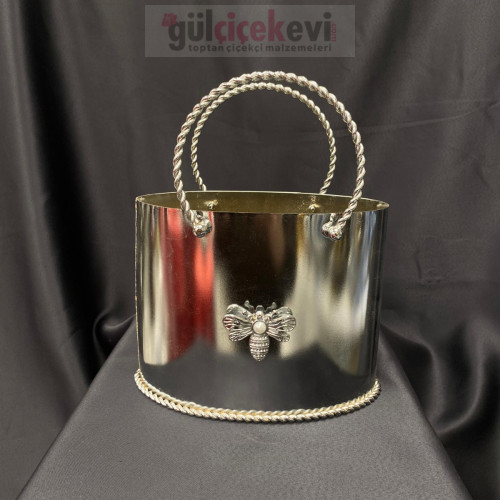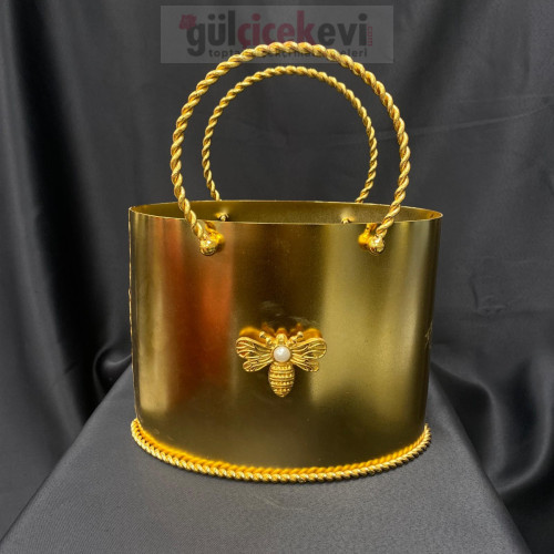 Vintage Metal Çiçeklik ve Dekoratif Çanta Vazo - 23009 - deg -
